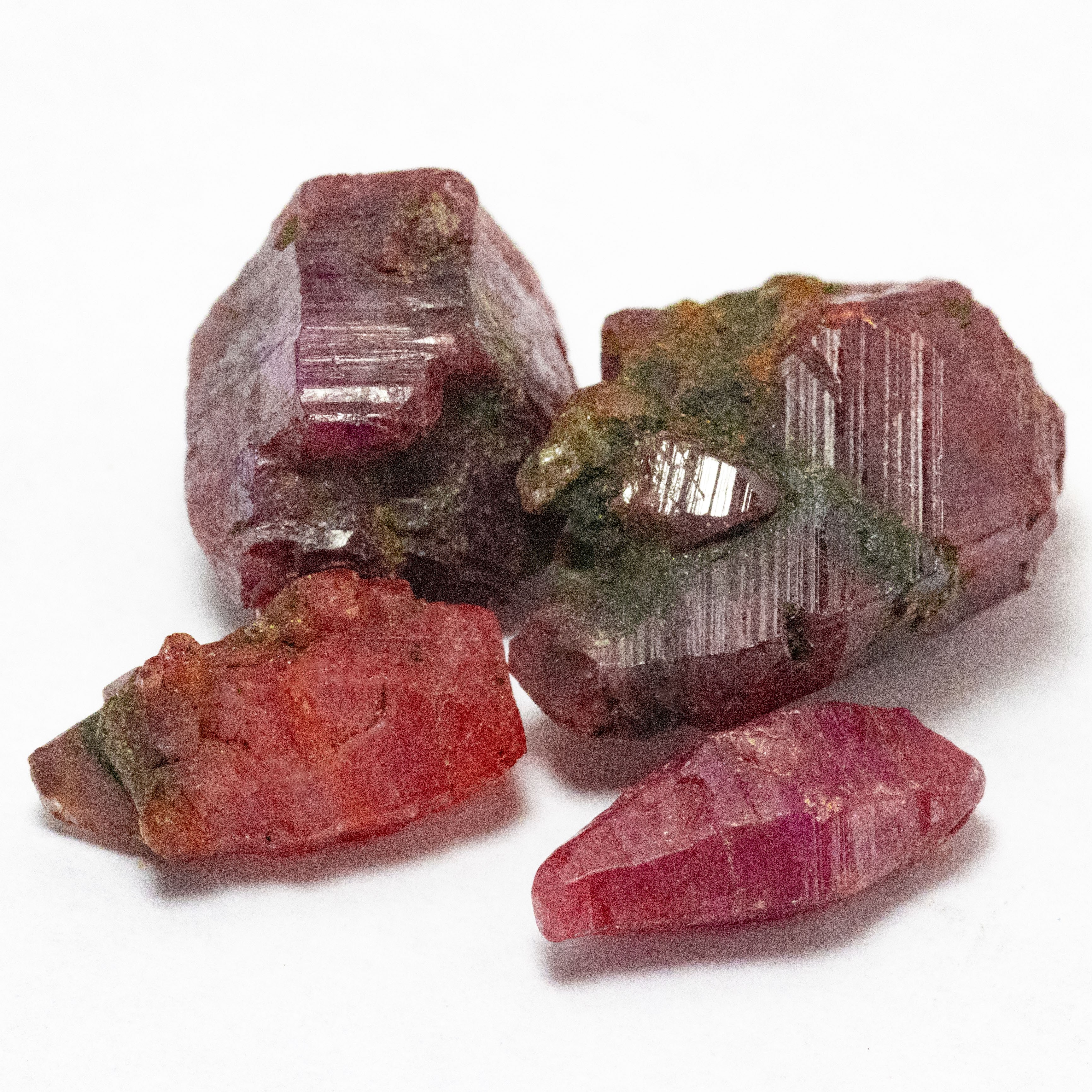 4 ungeschliffene Rubinkristalle Größe ca. 12 x 5 - 16 x 12 mm Gewicht insgesamt 29.47 Ct Reinheit opak inkl. Echtheitszertifikat
