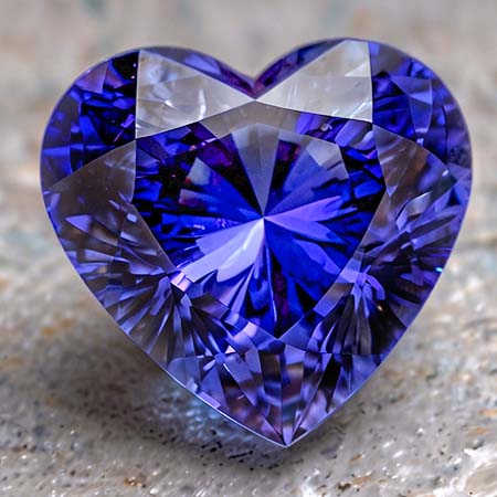 Tansanite im Herzschliff zählen zu den besonderen Raritäten, da dieser Schliff ein hohes Maß an Präzision erfordert und meist mit größerem Materialverlust verbunden ist. Nur wenige Rohsteine eignen sich dafür, weshalb Tansanite in dieser Form nur selten auf dem Markt zu finden sind